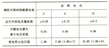 (1)閥控電池在運(yùn)行中每只單體電池電壓偏差值及放電終止電壓值應(yīng)符合表3-2的規(guī)定;表3-2    閥控蓄電池在運(yùn)行中電壓偏差值及放電終止電壓值的規(guī)定    單位:V