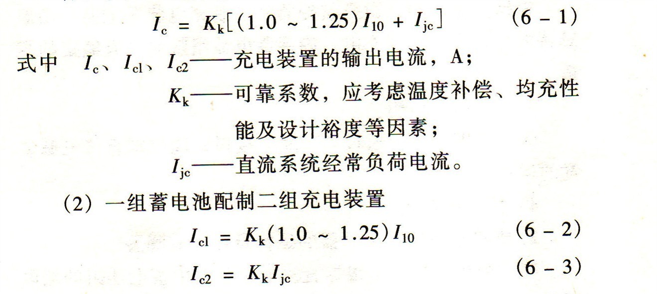 (4)二組蓄電池配制二組充電裝置每組充電裝置按式(6-3)計(jì)算。