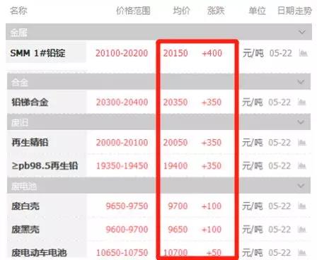 5-22鉛價(jià)大漲400元/噸;均價(jià)20150元/噸;漲價(jià)已成定局多廠家關(guān)閉訂單系統(tǒng)