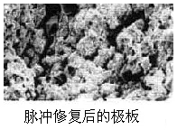 圖1自從硫化極板及脈沖修復(fù)效果(放大500倍)